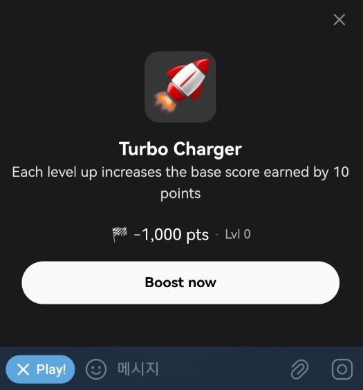 'Turbo Charger' 메뉴에서는 포인트를 사용해 비트코인 가격을 맞췄을 때 받는 포인트를 높일 수 있습니다.