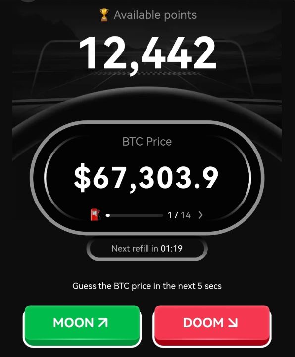 MOON 또는 DOOM을 선택해 예측이 맞으면 10포인트를 받을 수 있습니다.