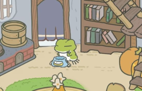 개구리가 외출 중일 때 오른쪽 하단의 door를 클릭하면 집 밖으로 나갈 수 있으며, 여기서 물고기를 만나게 됩니다.
