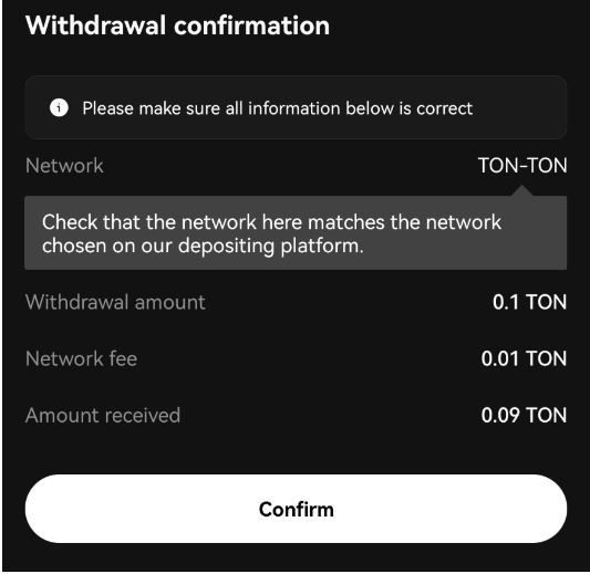 - 네트워크 수수료 : 0.01 TON