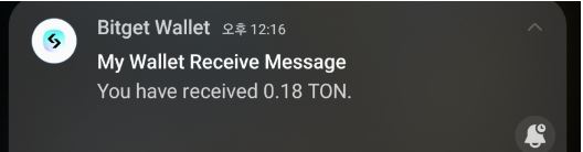 OKX 거래소에서 최종 승인 메시지가 뜨고, 약 30초 이내에 비트겟 지갑에서 TON 코인을 받았다는 알림 메시지가 왔습니다.