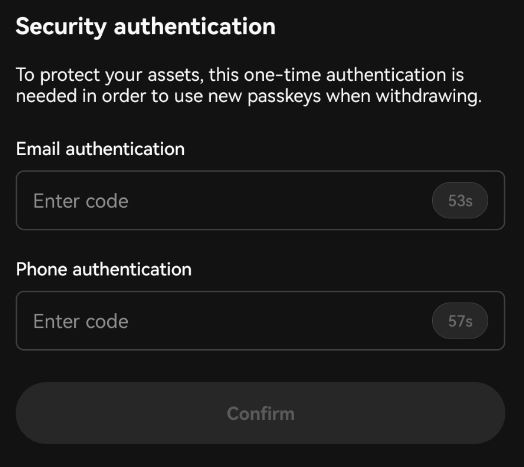 자금 송금을 위한 인증 단계에서는 이메일과 문자 인증 번호를 입력하거나, 지문 인증을 설정한 경우 지문을 이용해 송금을 완료할 수 있습니다.